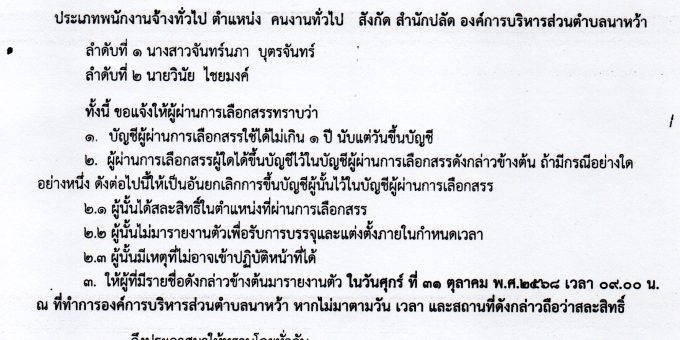 ประกาศผลการสรรหาและเลือกพนักงาน ต.ค.68
