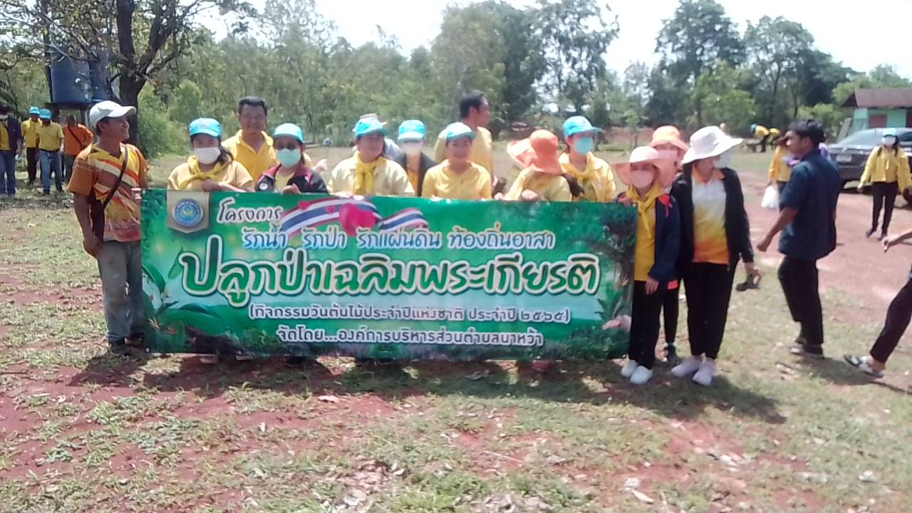 ปลูกป่าเฉลิมพระเกียรติ กิจกรรมปลูกต้นไม้บริเวณพื้นที่ในตำบลนาหว้า ประจำปี 2565 เพื่อเพิ่มพื้นที่สีเขียวในพื้นที่ว่างเปล่าในเขตตำบลนาหว้าให้เกิดความร่มรื่นแก่ชุมชน ส่งเสริมให้ประชาชนช่วยกันปลูกจิตสำนึกในการอนุรักษ์ทรัพยากรน้ำและป่า และเพื่อแสดงความจงรักภักดี เพื่อเฉลิมพระเกียรติสมเด็จพระเจ้าอยู่หัวมหาวชิราลงกรณ บดินทรเทพยวรางกูร เนื่องในโอกาสมหามงคลพระราชพิธีบรมราขาภิเษก อีกทั้งยังเป็นการส่งเสริมปรับปรุงแก้ไขอนุรักษ์และฟื้นฟูทรัพยากรธรรมชาติและสิ่งแวดล้อมชุมชน โ
