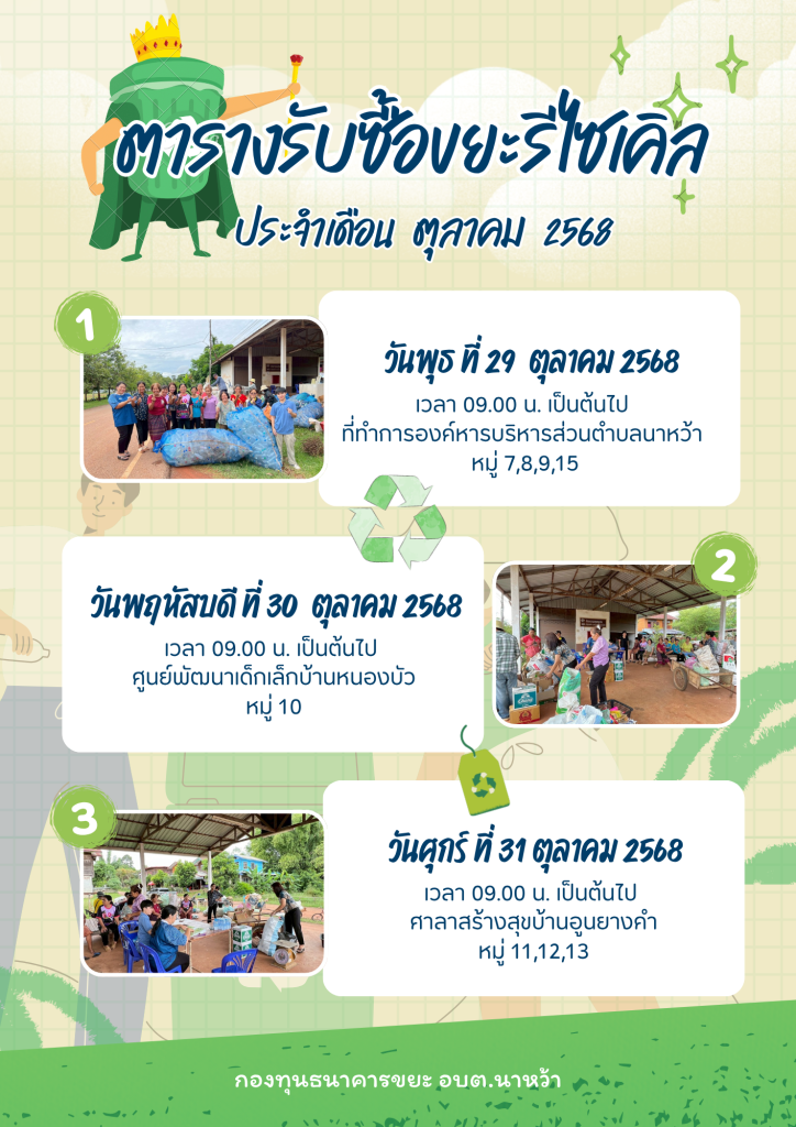 ประชาสัมพันธ์การรับซื้อขยะประจำเดือนตุลาคม 2568