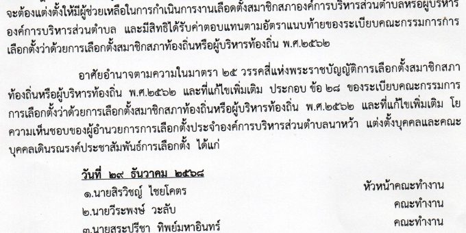Posted in ข่าวประชาสัมพันธ์ คำสั่งผู้อำนวยการเลือกตั้งประจำองค์การบริหารส่วนตำบลนาหว้า เรื่องแต่งตั้งและมอบหมายบุคคลหรือคณะบุคคลเดินรงณรงค์ประชาสัมพันธ์การเลือกตั้ง Admin Nawa คำสั่ง มอบกหมาบเดินรณรงค์เลือกตั้ง