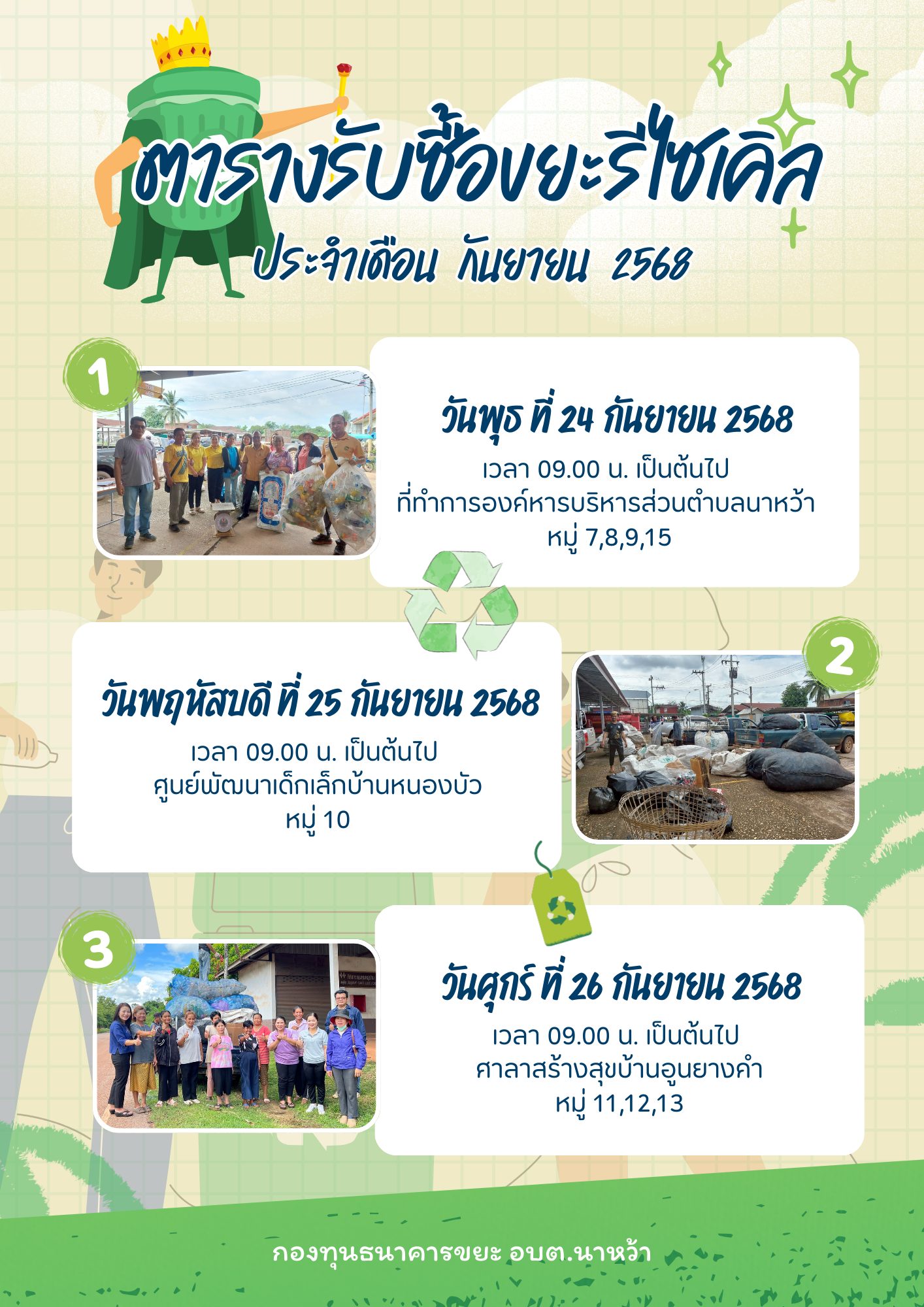ตารางรับซื้อขยะรีไซเคิล ประจำเดือน กันยายน 2568
