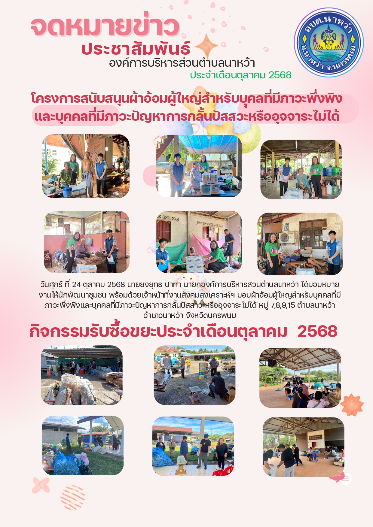 Posted in จดหมายข่าว จดหมายข่าว อบต.นาหว้า (ประจำเดือนตุลาคม 2568): โครงการสนับสนุนผ้าอ้อมผู้ใหญ่สำหรับบุคคลที่มีภาวะพึ่งพิง และบุคคลที่มีภาวะปัญหาการกลั้นปัสสาวะหรืออุจจาระไม่ได้ mungmee 14
